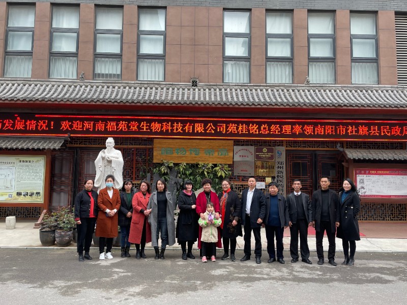欢迎河南福苑堂生物科技有限公司苑桂铭总经理率领南阳市社旗县民政局领导赵学琴、刘国培及劳动局领导王新民等一行到郑州科普基地-庹福朝泓膏药博物館及新悦医药企业参观考察学习交流中医药发展情況
