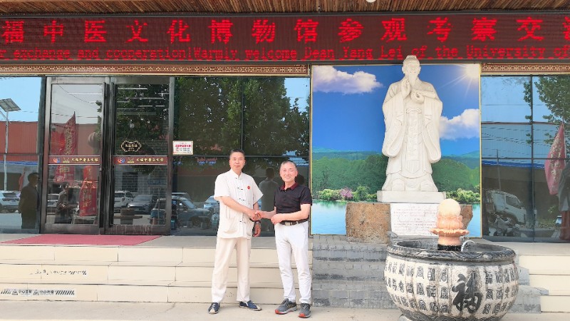 热烈欢迎美国加州大学硅谷学院杨磊院长、博士…来中国郑州庹福中医文化博物馆参观考察交流合作,仔细参观了中国中原中医药文化起源地、发祥圣地…岐黄故里-郑州“膏药、针灸,拔罐,枕头,红色中医文化”等展馆…传承发展情况……美国加州大学硅谷学校致力于全世界各个国家的中医从业者,爱好者进行中医药文化教育、人才培训、技术交流,产品产业发展…等领域,目前有近百个国家学生在该校学习……,为传承弘扬中国岐黄中医药文化…庹福中医文化博物馆响应一带一路…进行广泛的与该校进行文化交流产业合作…