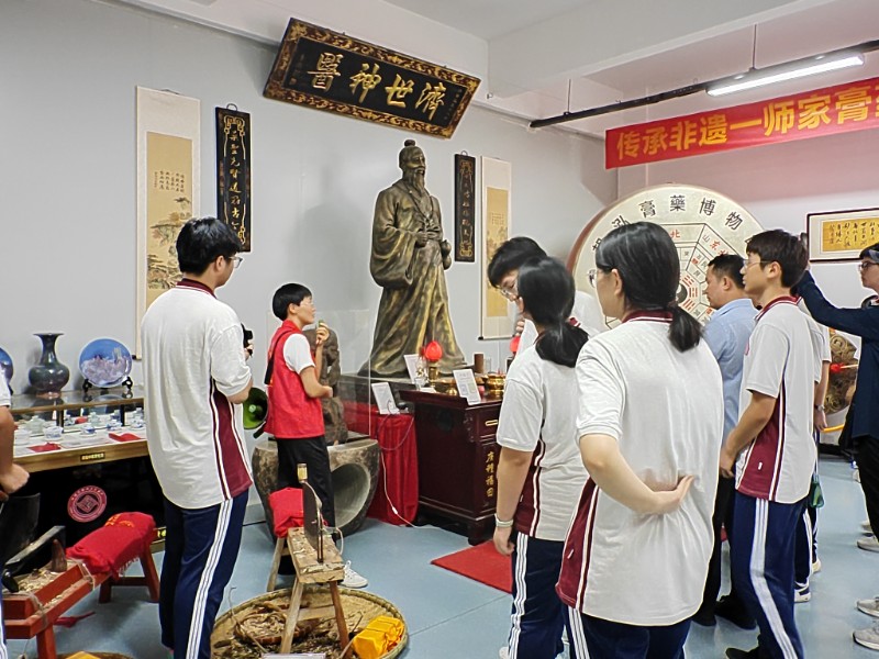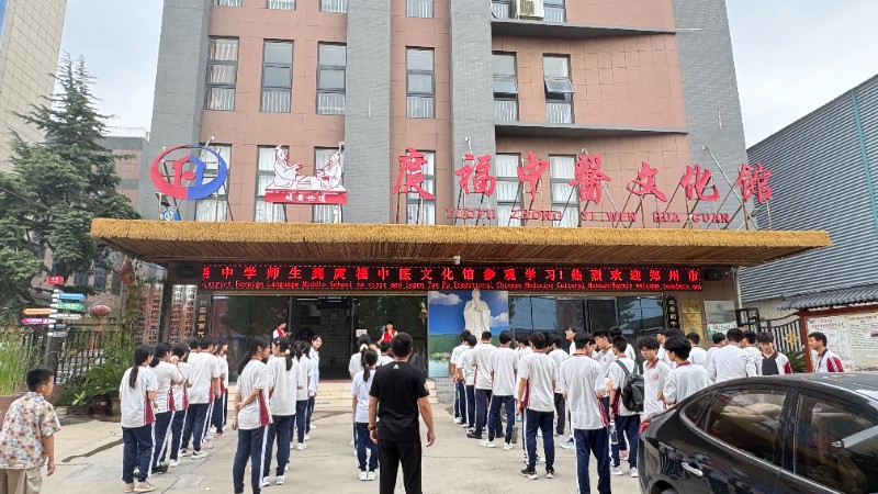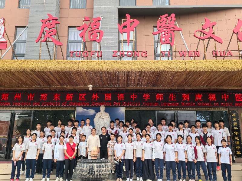 郑州市郑东新区外国语中学师生优秀代表百余人到庹福中医文化馆参观研学...