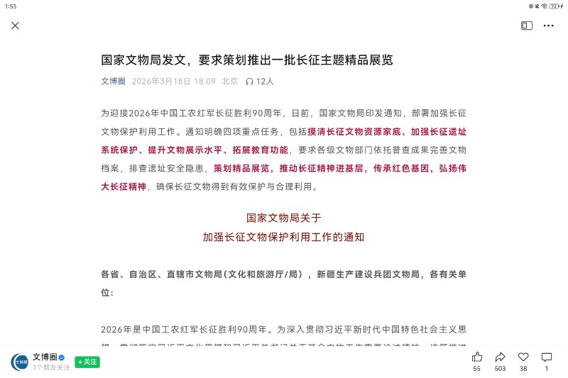 国家文物局发文,要求策划推出一批长征主题精品展览